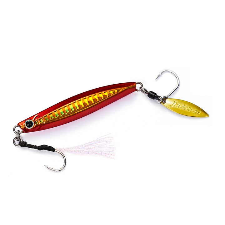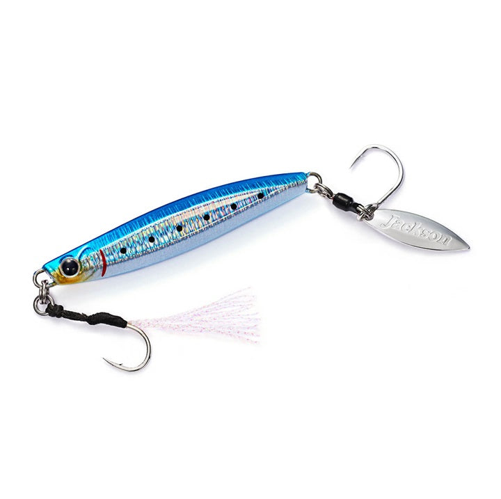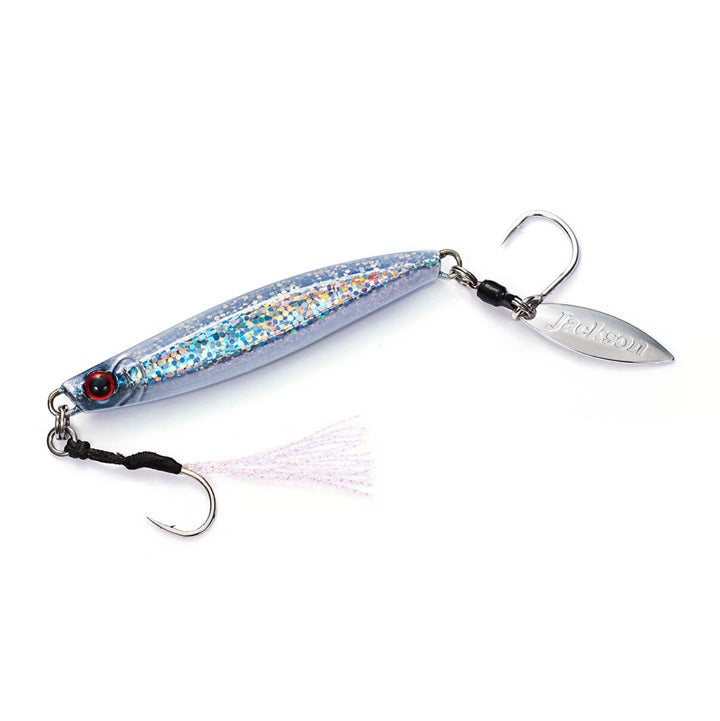 Un atractivo brillante para aprovechar al máximo esta oportunidad única. El Stayfall con efecto metálico crea un espacio de alimentación ideal para la pesca vertical. Esta pala con efecto metálico se desarrolló pensando en la pesca horizontal con reeling. El Stayfall fue diseñado exclusivamente para caídas con superficie cóncava y bordes asimétricos, pero este modelo de pala está diseñado para generar destellos fuertes y débiles con un delicado balanceo del cuerpo mediante el contraste de los cóncavos y los bordes. El atractivo brillante de la pala, junto con destellos de diferentes intensidades, ha aumentado al máximo el poder de atracción de los peces con un doble efecto de destello contra las anjovas que migran a gran velocidad. Las anjovas migran muy rápido, y el peso que queda atrapado en el anzuelo al momento del picado es considerable, por lo que se utiliza un anzuelo simple más fuerte que uno triple. Esto completa un jig metálico que aprovechará al máximo esta oportunidad y no dejará escapar a la presa capturada. Largo: 6,4 cm Peso: 30 gramos Anzuelos: #12 y #M