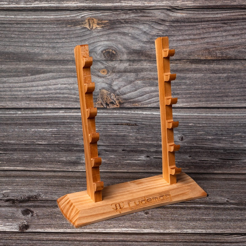 La peana de madera para cuchillos y navajas es la solución de almacenamiento perfecta para cualquier amante de la cocina. Este modelo consta de seis unidades, cada una diseñada para acomodar herramientas de corte de diferentes tamaños y formas. Con una altura de 22 cm, un largo de 22 cm y un ancho de 7,5 cm, esta peana es compacta pero lo suficientemente espaciosa para almacenar varias herramientas de corte al mismo tiempo. Fabricada con madera de alta calidad, esta peana es resistente, duradera y presenta un acabado elegante que complementa cualquier estilo de decoración de cocina. Además, su peso de 280 gr la hace fácil de transportar y mover a cualquier lugar que necesites. Con esta peana de madera, tus cuchillos y navajas estarán siempre organizados y a mano, lo que te permitirá cocinar con mayor comodidad y seguridad. La peana de madera para cuchillos y navajas es la solución ideal para aquellos que buscan una combinación de funcionalidad y estilo en su cocina.