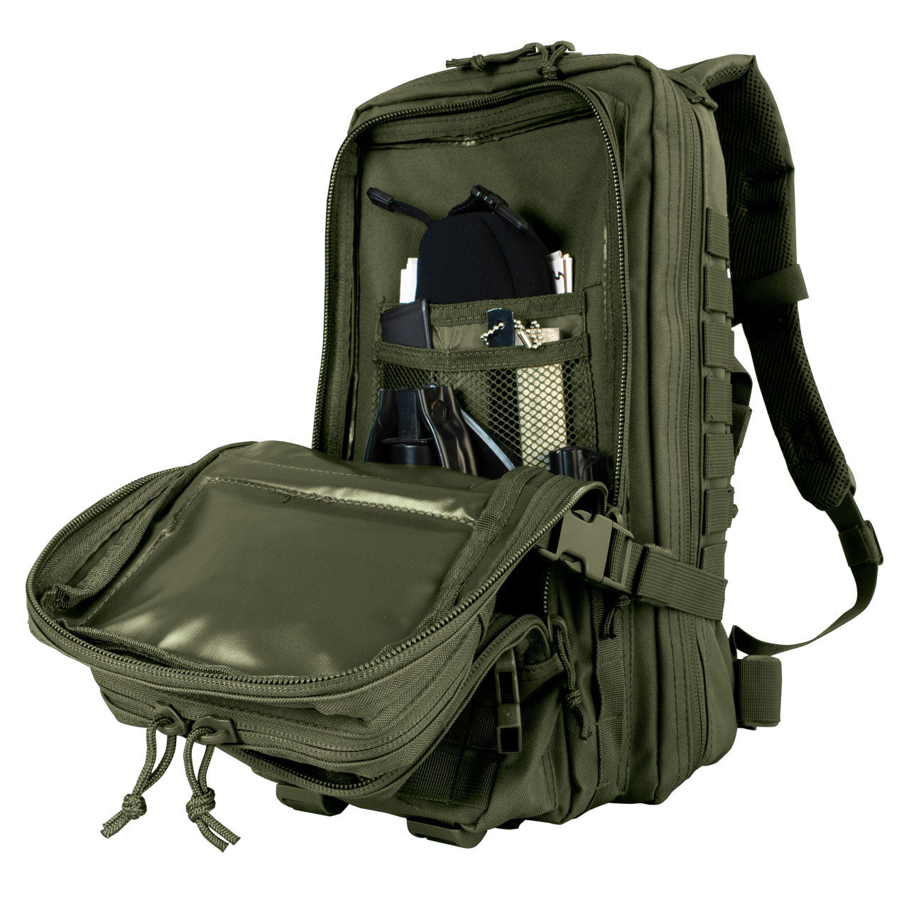 - Dos bolsillos utilitarios externos frontales para supervivencia y elementos esenciales al aire libre.