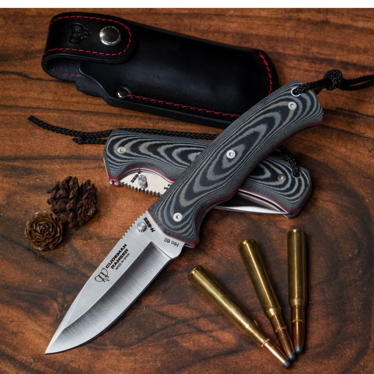La navaja de supervivencia RANGER (327-MF) es una herramienta de alta calidad y rendimiento que te acompañará en tus aventuras al aire libre. Con una longitud de hoja de 10 cm y una longitud total de 23 cm, esta navaja es compacta y fácil de transportar. El mango de micarta negra con separador rojo ofrece un agarre cómodo y seguro, mientras que la virola y el anclaje del mango de tornillo allen inox/casquillo interior roscado de latón garantizan una construcción resistente y duradera. La hoja de acero Böhler N-695 con dureza de 59/60 HRc tiene un acabado satinado y una punta drop-point, lo que la hace ideal para una variedad de tareas en exteriores. Además, el sistema de cierre de bloqueo de liner asegura la hoja en su lugar mientras está en uso. La navaja Ranger también viene con una funda de cuero negro incluida, con pasador para cordón fiador, tetón en la hoja, y cremallera en el lomo. Con un peso de aproximadamente 235 gr (sin la funda) y un grosor de hoja de 2.8 mm, la navaja Ranger es una opción confiable para cualquier entusiasta de actividades al aire libre o aventurero en general.