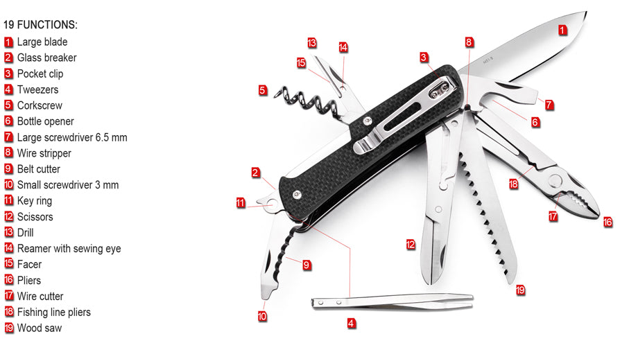 Se espera que los cuchillos multifuncionales de la serie M ofrezcan una excelente combinación de funcionalidad sustancial y buena portabilidad. Estos cuchillos se adaptan para el transporte diario para uso diario o métodos de respaldo para tipos de herramientas al aire libre.