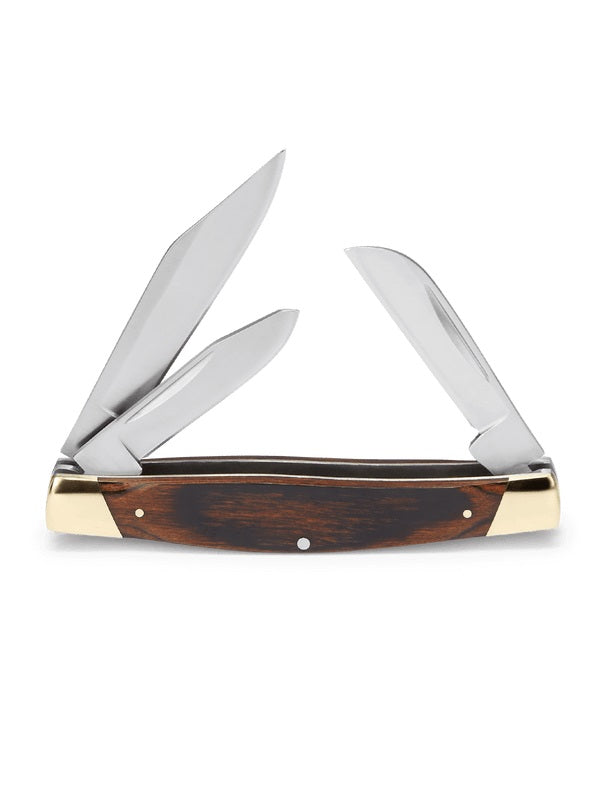 Tradicional, conveniente y multiusos. La navaja de bolsillo Stockman® es la navaja de tres hojas más grande disponible de Buck. La hoja de punta recortada es buena para trabajos de detalle, la hoja Spey es perfecta para desollar o realizar cortes de barrido con el cuchillo, y la hoja de pata de oveja es perfecta para realizar un corte limpio, especialmente en una superficie de corte plana. Longitud cerrada: 3 7/8" (9,8 cm). Longitudes de hoja: 2 ¾" de punta recortada modificada, 2" de punta recortada, 2" de pata de oveja.